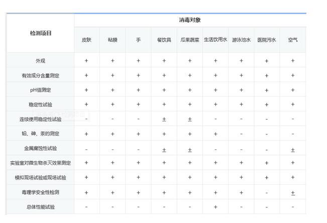 消毒液(劑)的測試標準為:EN 1276:1997《食品業(yè)、工業(yè)、家用和公共場所設(shè)備中測試消毒劑和防腐劑的殺菌作用的定量懸浮液試驗》。具體檢測項目如下: